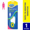 Κόψτε τους πάτους Gel Activ κατά μήκος των σηματοδοτημένων γραμμών ανάλογα με το νούμερο του παπουτσιού σας. Η γραμμή Α αντιστοιχεί σε Νο38, η Β σε Νο39, η C σε Νο40. Το πλήρες μήκος του πάτου αντιστοιχεί σε Νο41-42. Για το Νο37, κόψτε τους πάτους ανάμεσα στη γραμμή Α και το κίτρινο gel.