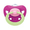 Ορθοδοντική πιπίλα της εταιρείας Nuk με θηλή από σιλικόνη, υλικό εύκαμπτο και ανθεκτικό στο χρόνο που αντέχει στις ακραίες θερμοκρασίες.
