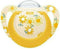 Ορθοδοντική πιπίλα της εταιρείας Nuk με θηλή από σιλικόνη, υλικό εύκαμπτο και ανθεκτικό στο χρόνο που αντέχει στις ακραίες θερμοκρασίες.